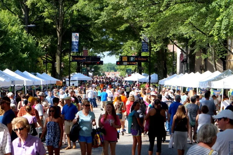 On Saturday mornings from the beginning of May until the end of October, two blocks of downtown Greenville’s Main Street are transformed into a bustling farmers' market.