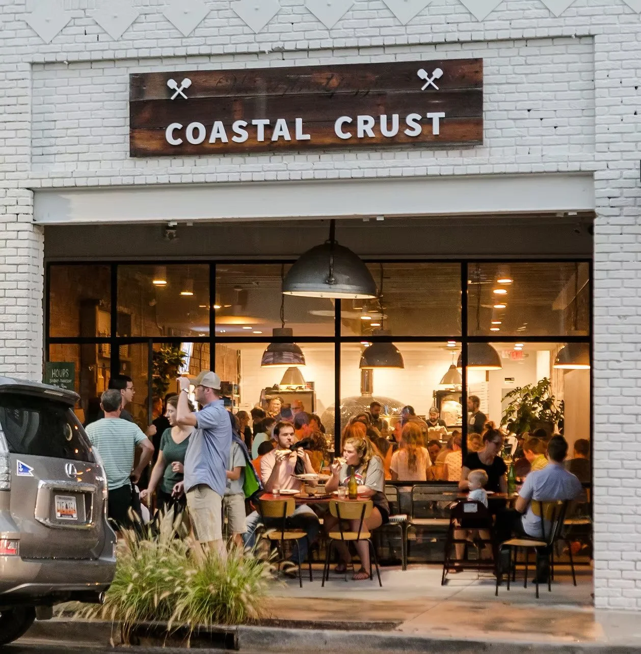 Coastal Crust in the West Village serves wood-fired pizzas and pasta—great for a casual lunch or dinner after exploring the local shops.